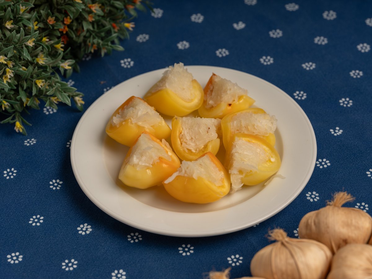 csemegeuborkával, szalámival, sajttal töltve (Köretet nem tartalmaz.)