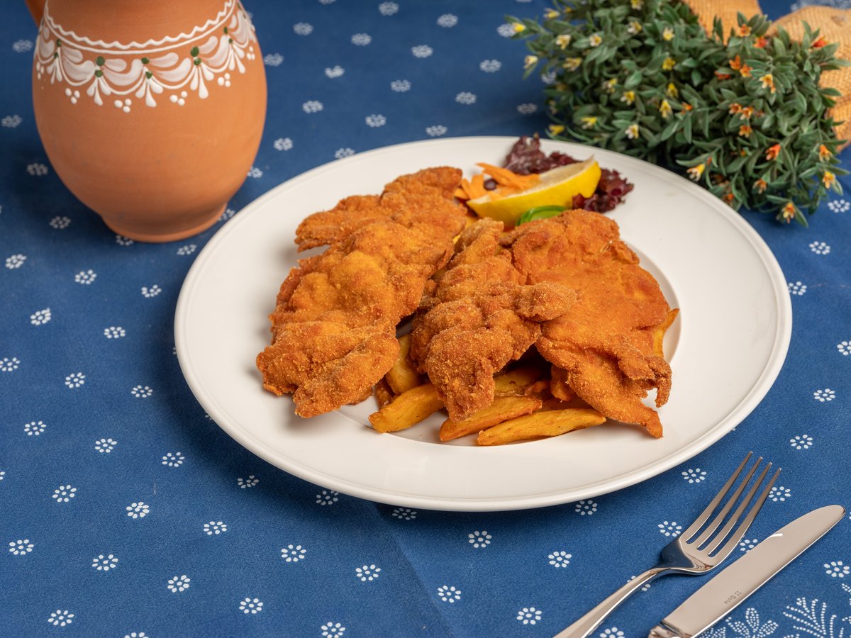 Filézett pontyszeletek hagyományos bundában (Köretet nem tartalmaz)/Carp filets breaded (does not include garnish)