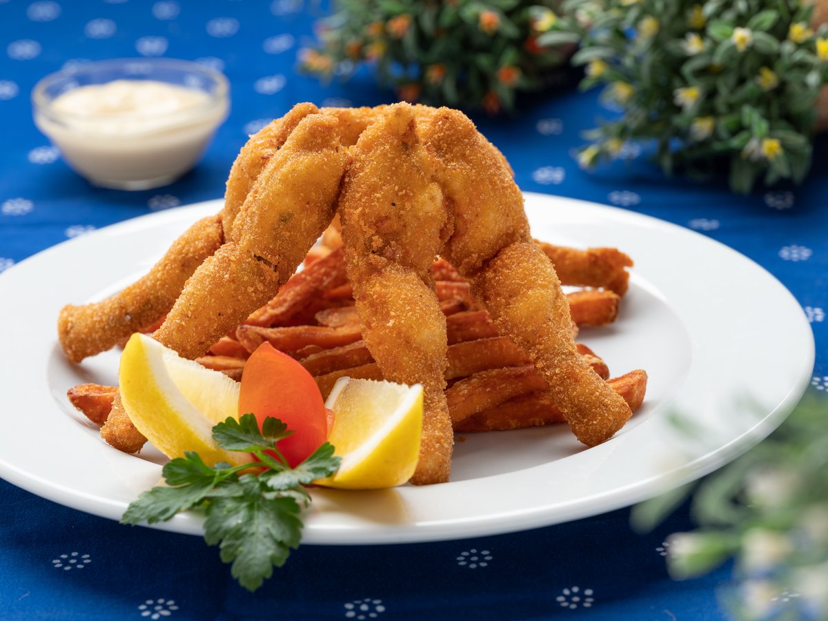 Rántott békacombok hagyományos panírban ( Köretet nem tartalmaz)/Fried ,Breaded Frog Legs (Does not include garnish)