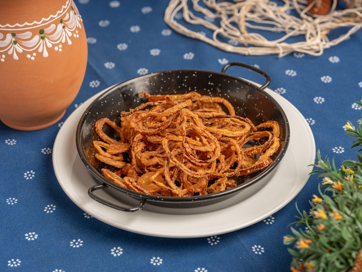 (kétszemélyes) szögedi roppanós halfalatok, haltepertő “szögediesen”,haltej rántva, marinált lilahagyma, csípős-citromos joghurtmártogatós