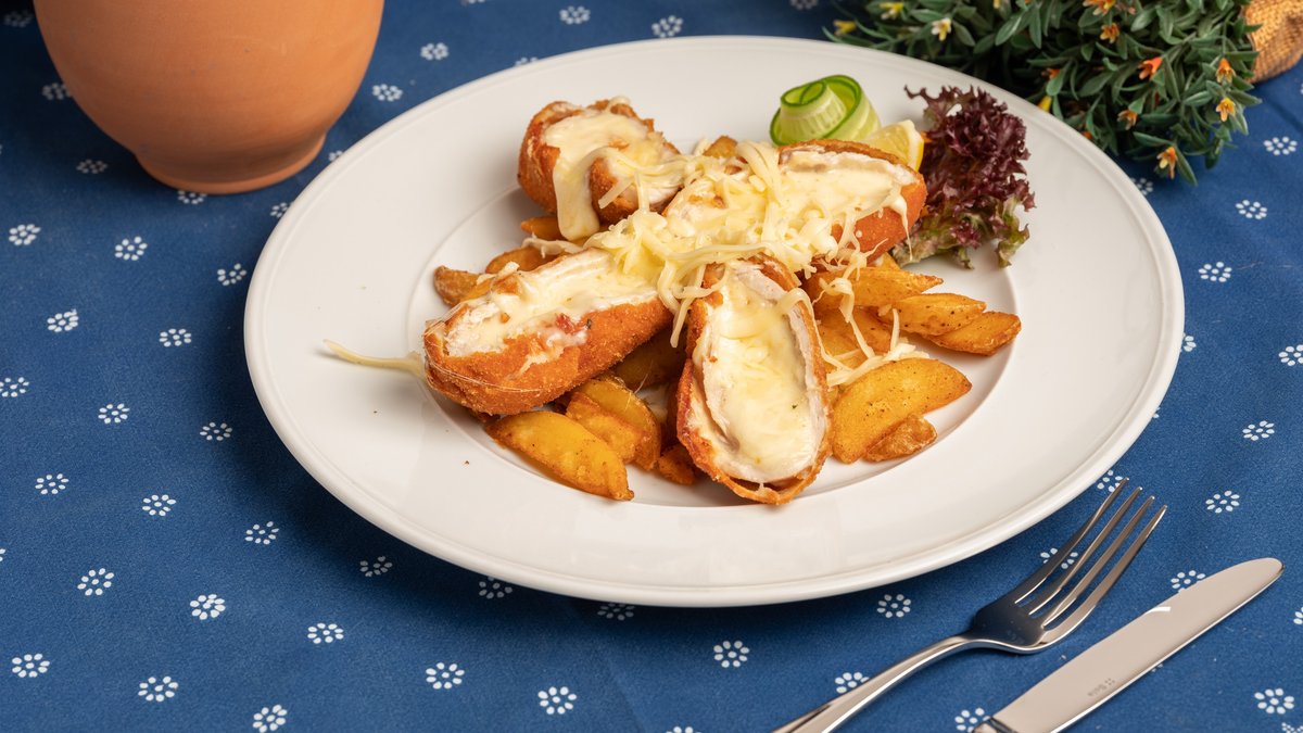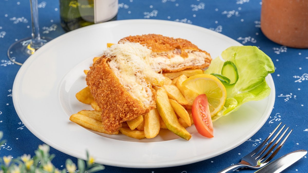 Harcsafilé Sajttal, sonkával töltve , bundázva, bő olajban kisütve. (Köretet nem tartalmaz.)/Catfish fillet Filled with ham and cheese, breaded. (Does not include garnish)