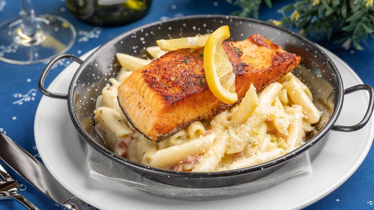 Rostlapon sült harcsaszeletek gombamártással és tejföllel (Köretet nem tartalmaz)/Roasted catfis fillets ,covered in mushroom sauce and sour cream (Does not include garnish)