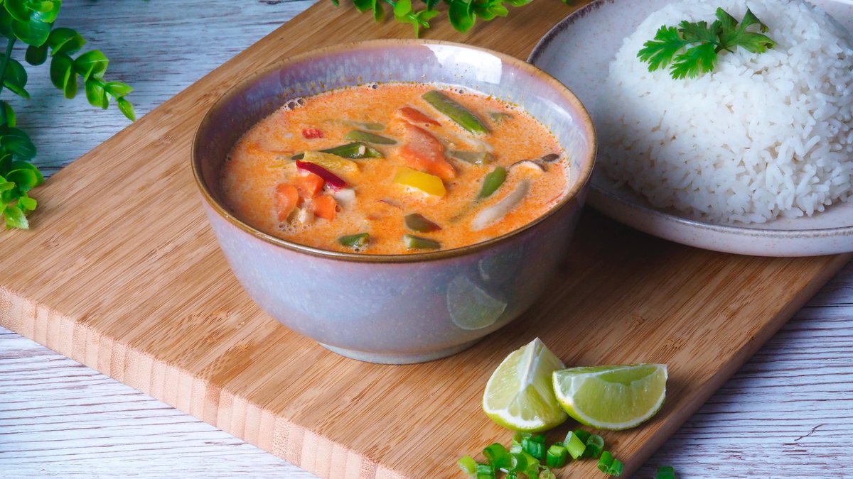 Most még krémesebb és kevésbé csípős! Enyhén csípős thai kókusztejes vörös curry zöldbabbal, gombával, pritamin paprikával, répával Megjegyzés: Ezen ételünk csípősségét nem áll módunkban csökkenteni