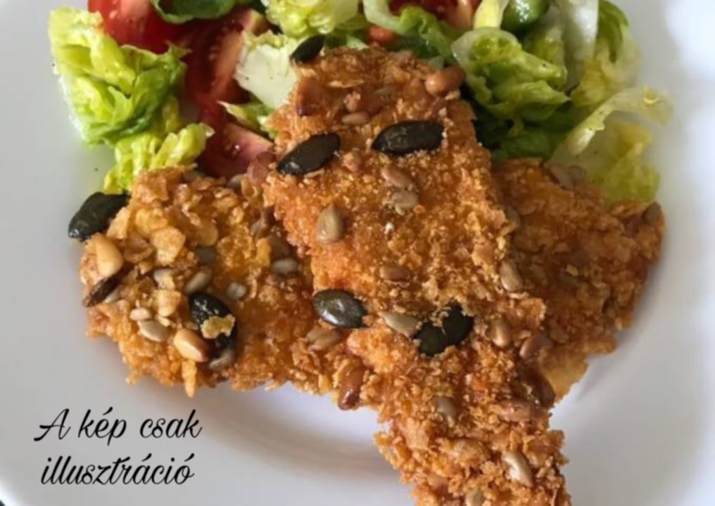 Rántott csirkemellfilé, szezámmagos, tökmagos bundában, választható körettel