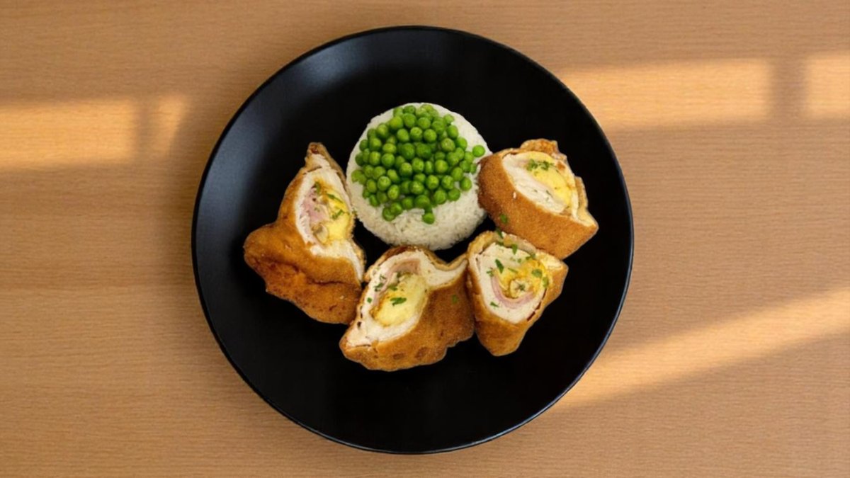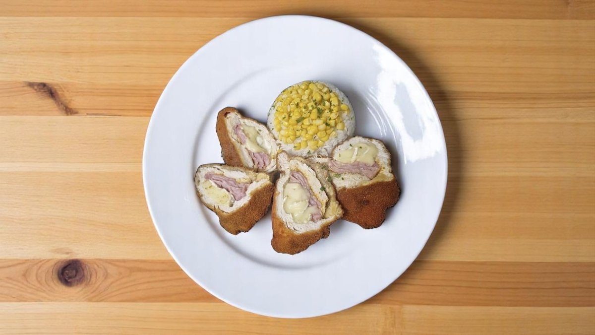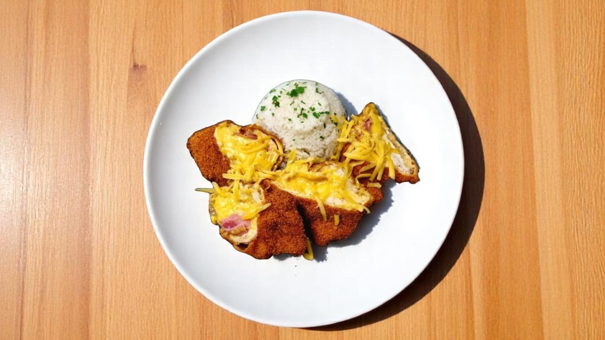 Cheddar sajttal és sonkával töltött csirkemell rántva