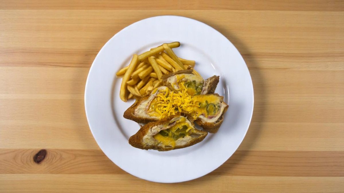 Cheddar sajttal, sonkával és jalapenoval töltött csirkemell rántva