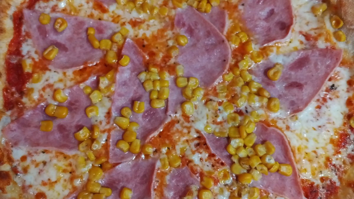 paradicsomszósz, mozzarella sajt, sonka, kukorica, ananász