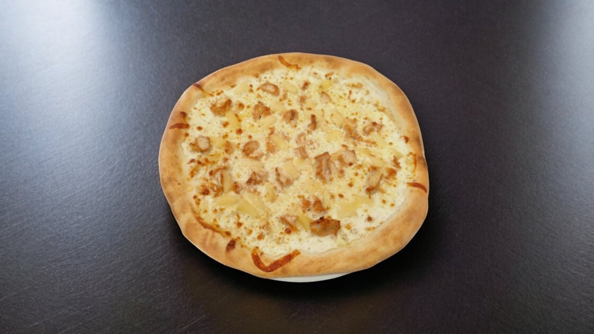 fokhagymás-tejfölös alap, mozzarella sajt, csirkemell, kukorica