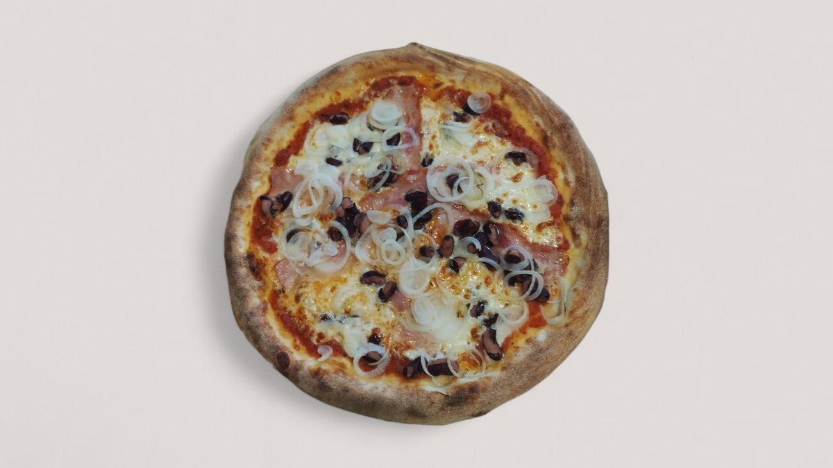 paradicsomszósz, mozzarella sajt, sonka, gomba, szalámi, olívabogyó