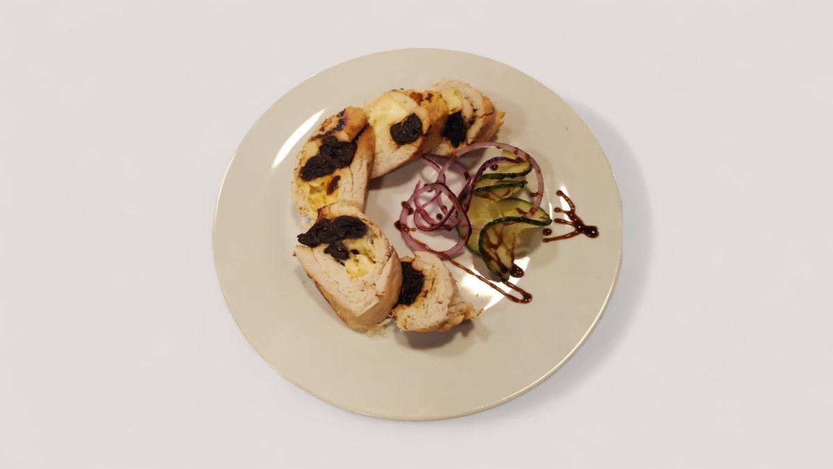 Göngyölt csirkemell asztaltszilvával és camamberttel töltve