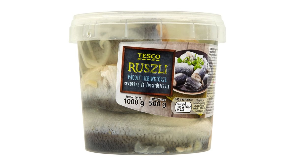 Tesco Ruszli pácolt heringtörzs cukorral és édesítőszerrel 1000 g