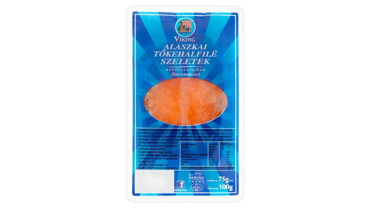 Viking alaszkai tőkehalfilé szeletek növényi olajban füst ízesítéssel 100 g