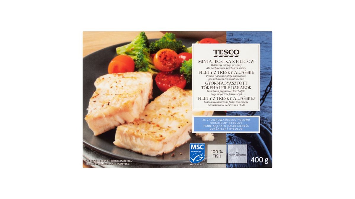 Tesco gyorsfagyasztott tőkehalfilé darabok 400 g