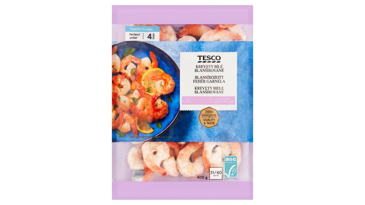 Tesco gyorsfagyasztott blansírozott fehér garnéla 400 g