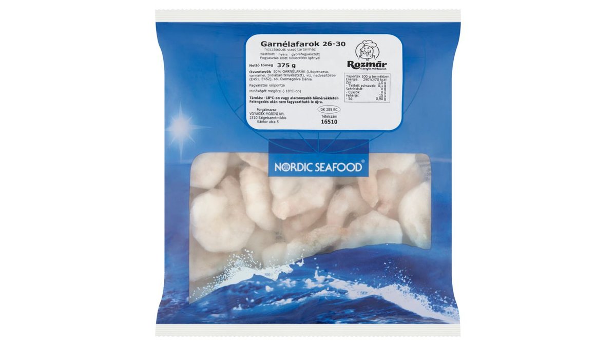 Rozmár gyorsfagyasztott tisztított nyers garnélafarok 26-30 375 g