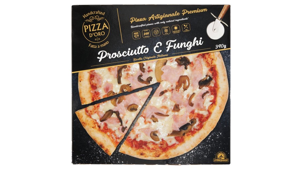 Pizza D'Oro gyorsfagyasztott kézműves pizza főtt sonkával, gombával 390 g
