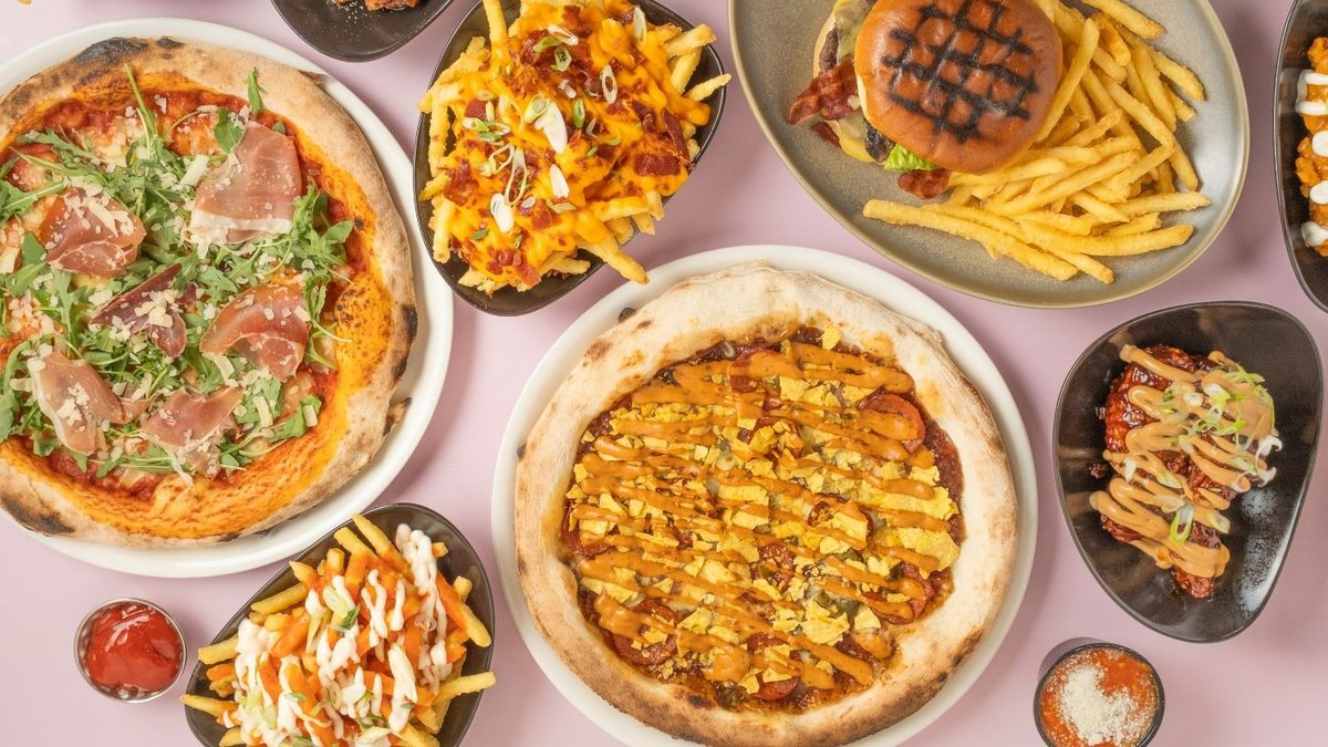 Eldbakaðar Napolitana súrdeigs pizzur, hamborgarar, vængir, salöt.