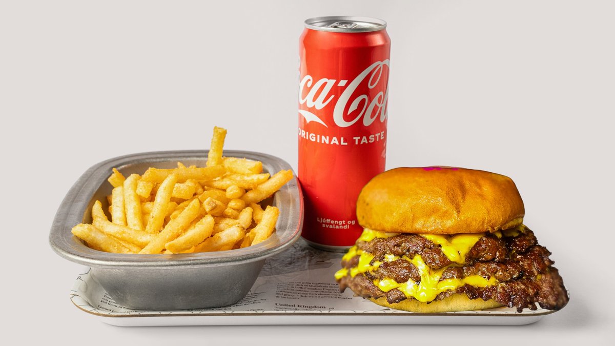 Á 2Guys upplifiru alvöru djúsi hamborgara, stökkar franskar og nóg af osti.