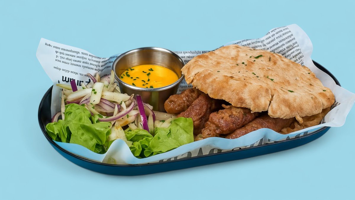 Allir réttir eru stakir með val um kjöt eða vegan rétt. Einnig er hægt að breyta í máltíð sem inniheldur franskar og val um að fá súpu aukalega frítt með.