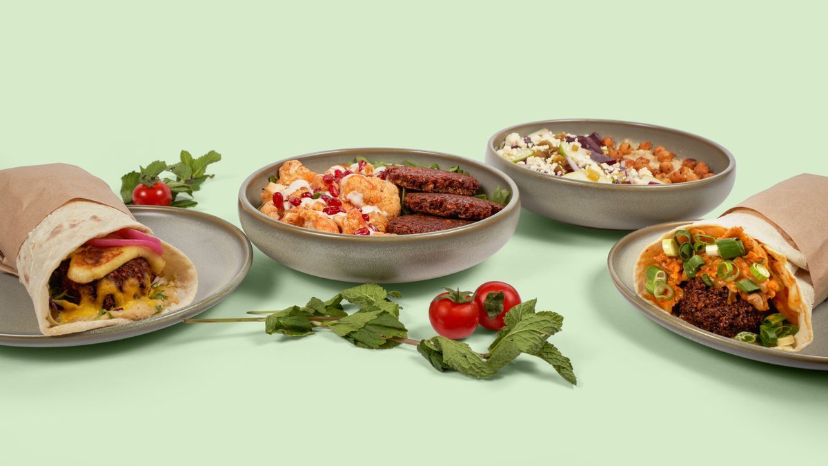 Rauðrófu falafel með halloumi, hummus, káli, adjika, súrsuðum lauki & mangó aioli.