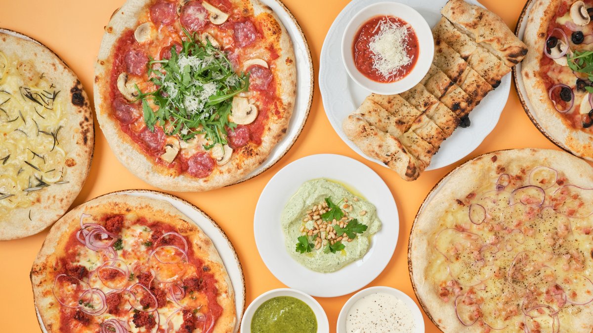 Tómatsósa, ferskur mozzarella og salami ásamt pikkluðu chili og heitu hlynsírópi.