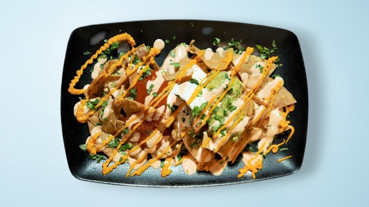 Borið fram með guacamole, sýrðum rjóma, rauðri sósu, nachososti og pico de gallo