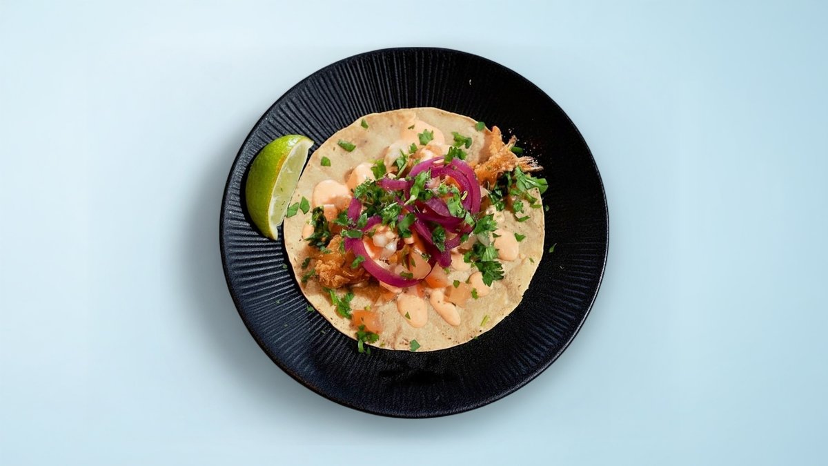 (1 stykki) Djúpsteiktur rækjur, borinn fram í maístortillu með chipotle mæjo, pico de gallo, súrsaður rauðlaukur og kóríander.