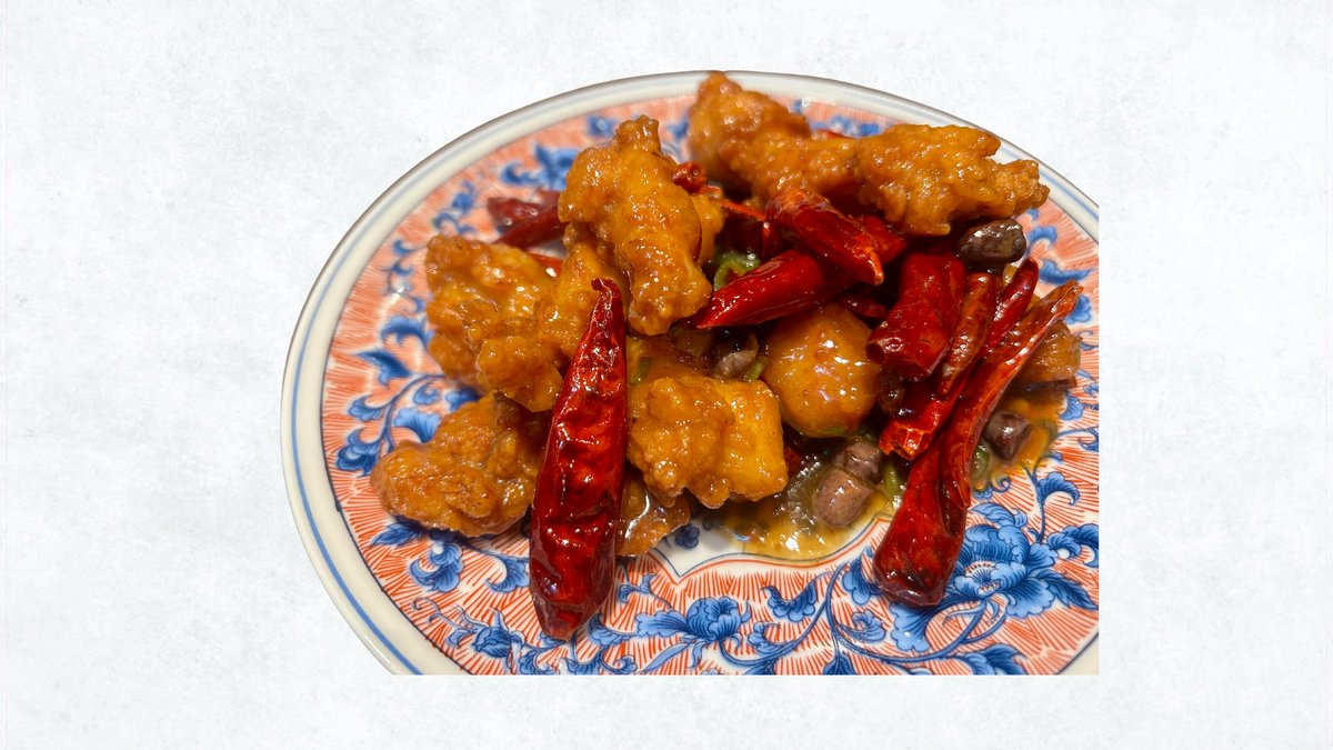 鶏の唐揚げを唐辛子などで炒めた四川料理