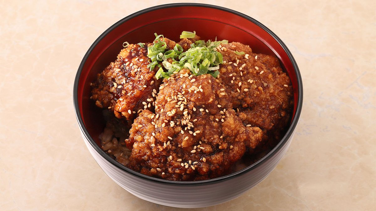 第15回からあげグランプリで金賞を受賞した「しあわせ食堂」監修の唐揚げを甘めのてりやきベースのタレで合わせたコク旨な味わいの丼ぶり。