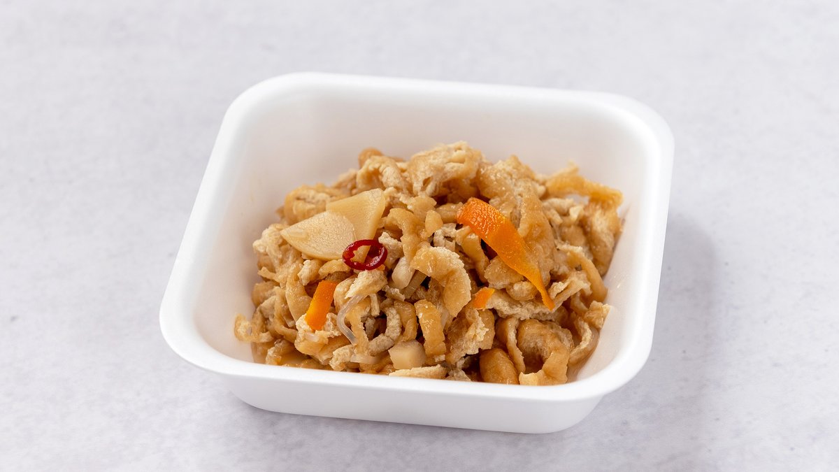 油揚げを甘辛いタレで煮込んだご飯によく合う一品です。