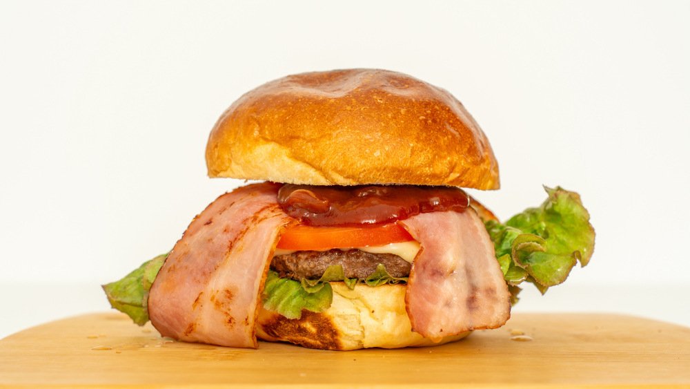 ハンバーガーにベーコン、トマト、チーズなどを加えたデラックスなバーガー!