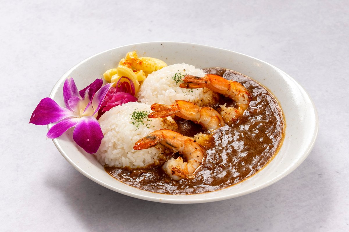 スパイスが香るカレーにハワイアン風の具材を加えた、南国気分が味わえる一皿です。