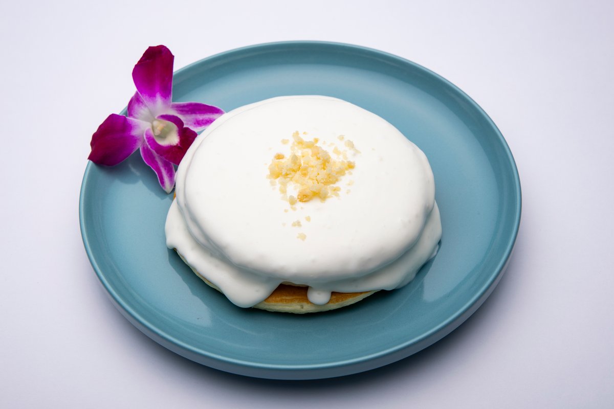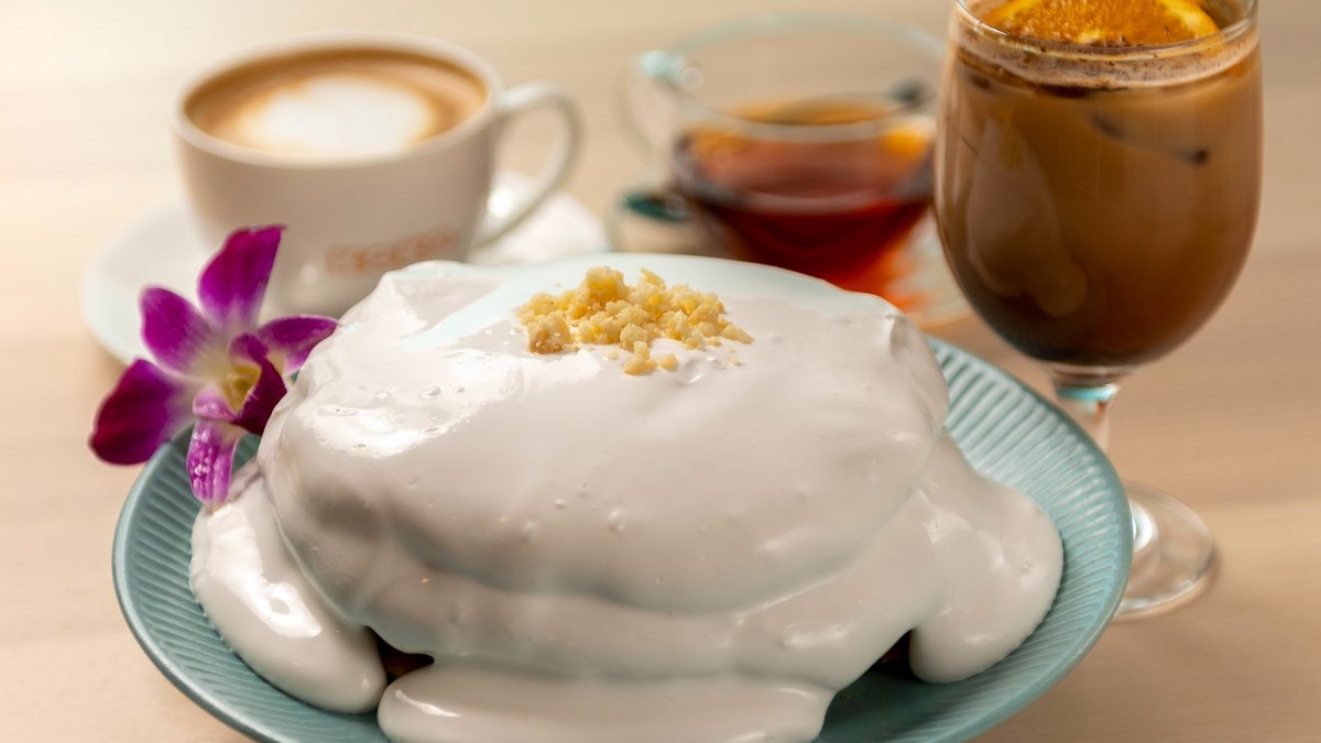 ふわふわのパンケーキに、香ばしいマカダミアナッツと濃厚なココナッツソースをたっぷりかけた南国スイーツ。やさしい甘さとナッツの食感が絶妙で、トロピカルな風味を楽しめるハワイアンデザートです。