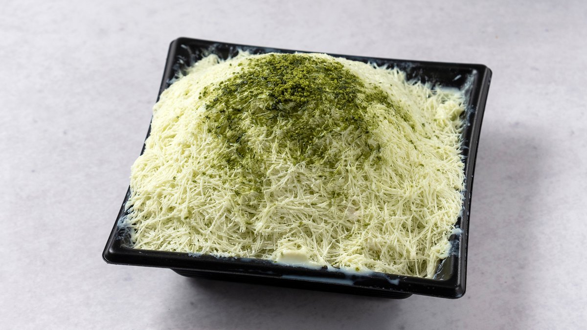 糸状に削った繊細な氷に、ほろ苦い抹茶とミルクの甘さが調和した、和風の新食感スイーツです。