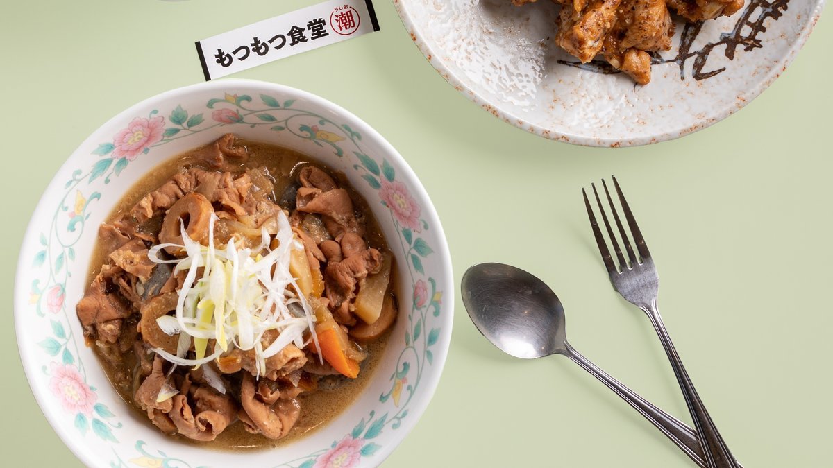 看板メニューの「もつ煮込み」は完成まで4日間じっくりと煮込んでます。