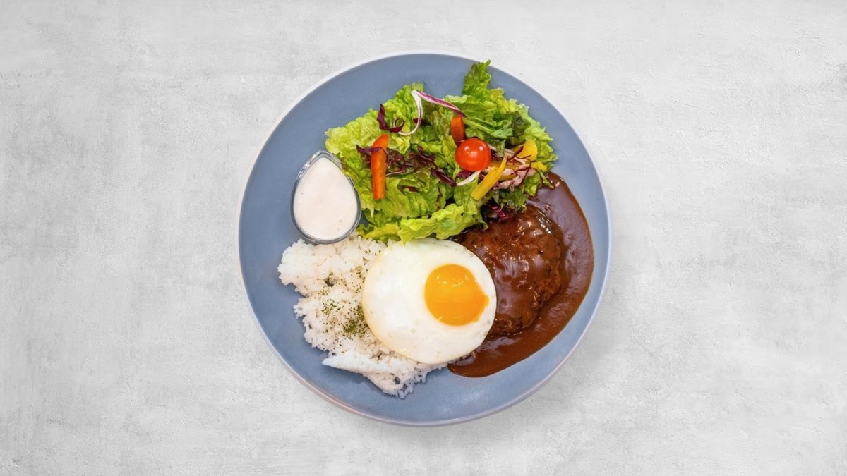 ジューシーな手作りハンバーグに目玉焼きを乗せたハワイといえばのロコモコ!自家製デミグラスソースで当店流のロコモコです。