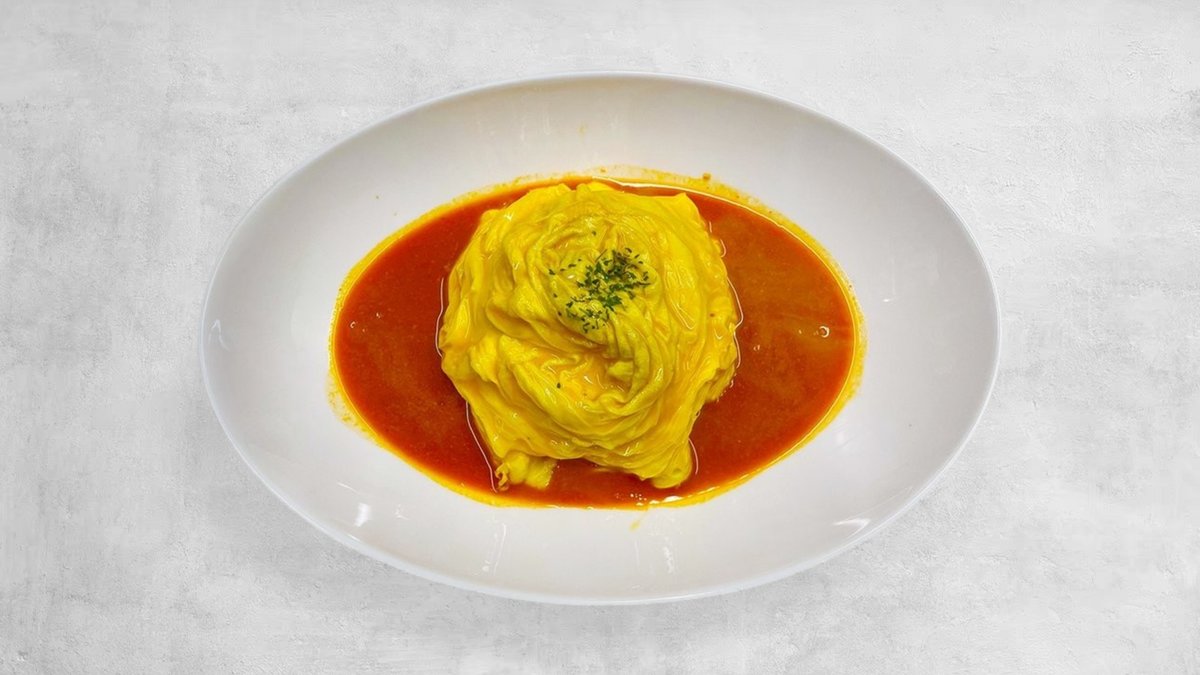 ふわとろ卵に、明太子の旨みとクリームのまろやかさを合わせた特製ソースをかけたオムライス。コクがありつつ軽やかな後味で、最後まで飽きない贅沢な一品です。