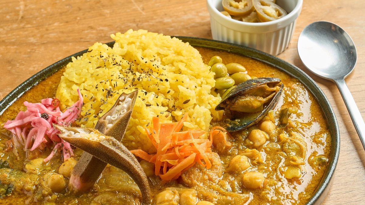 ココナッツを使用した、まろやかな味わいのシーフードカレー。