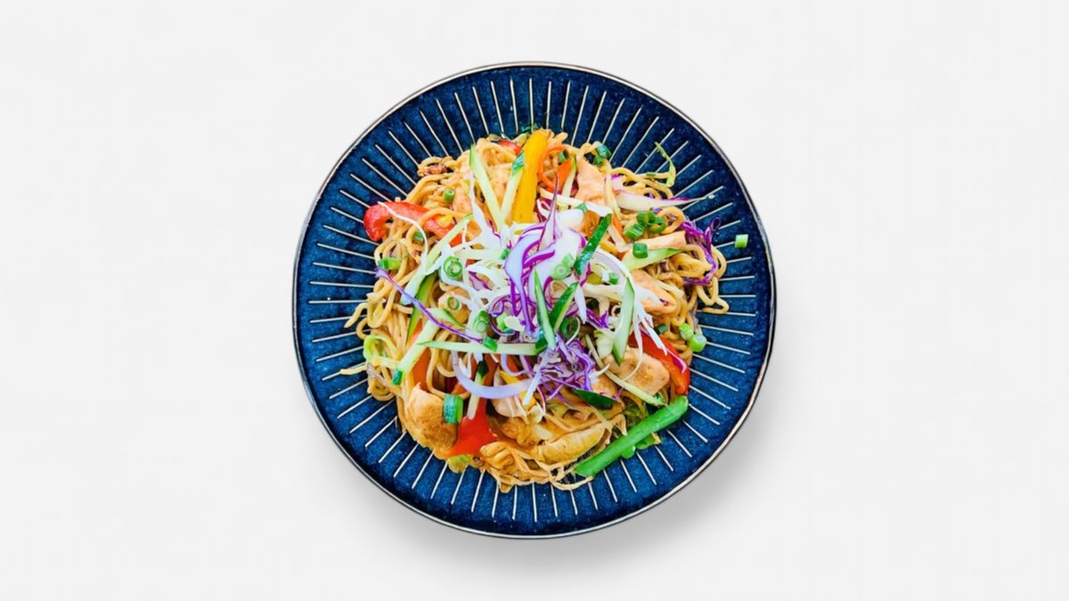 スパイシーな味付けのチキン入り焼きそば。クセになるアジアの定番麺料理です。