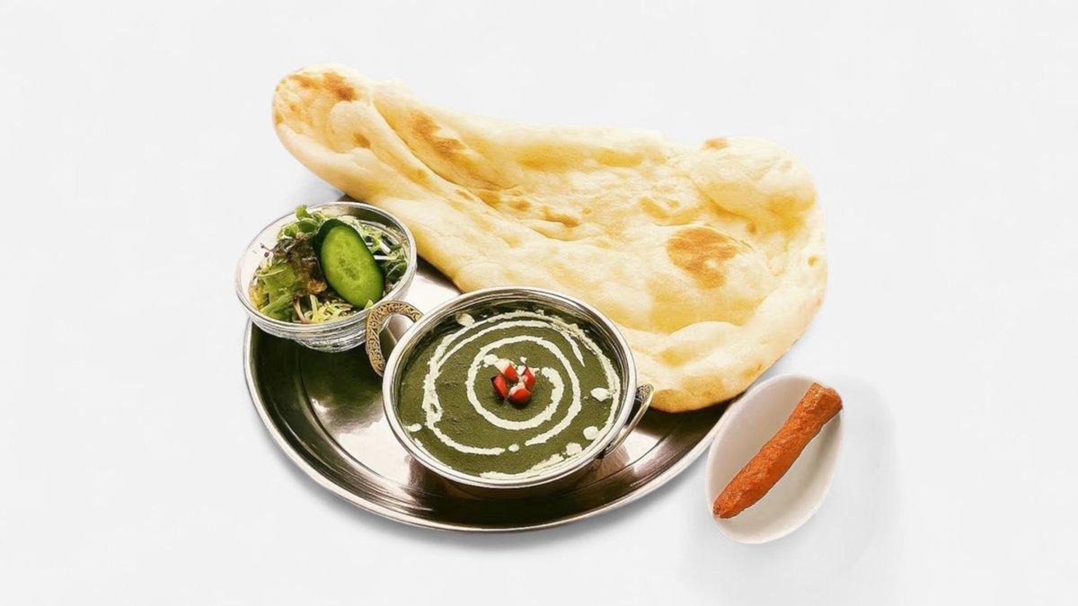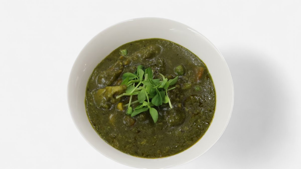 サグ(ほうれん草などの青菜)を使った栄養満点のグリーンカレー。クリーミーな仕上がりです。