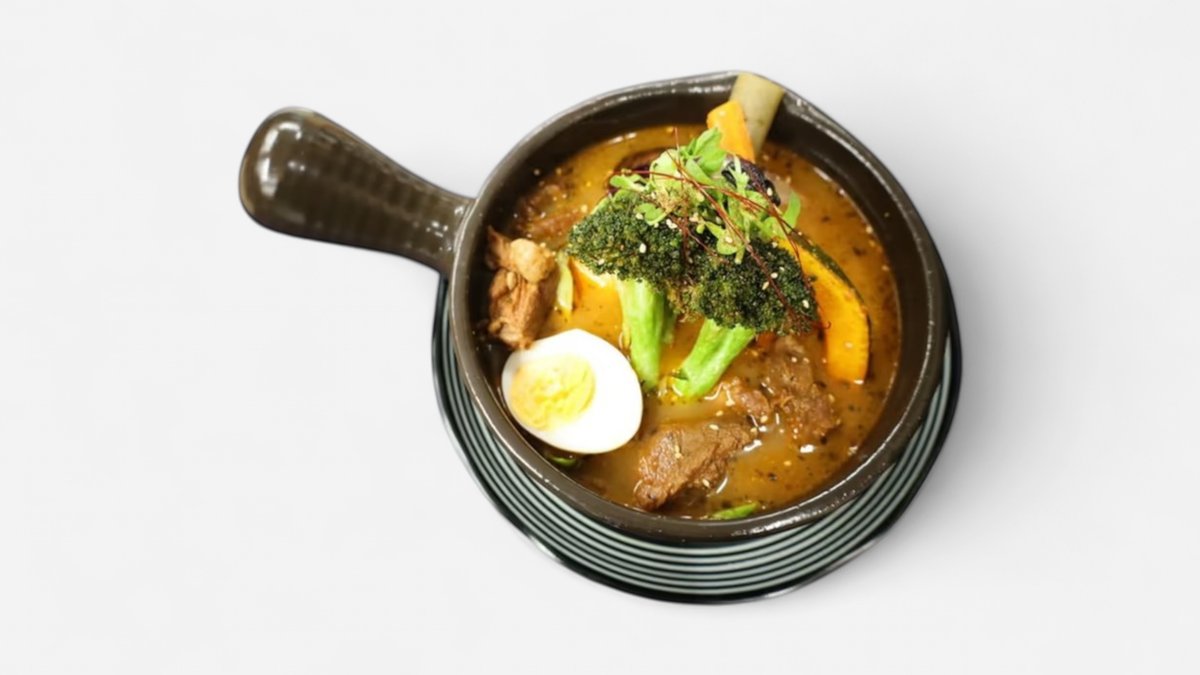 やわらかいポークとごろごろ野菜の旨みを楽しめる、まろやかで満足感のあるスープカレーです。