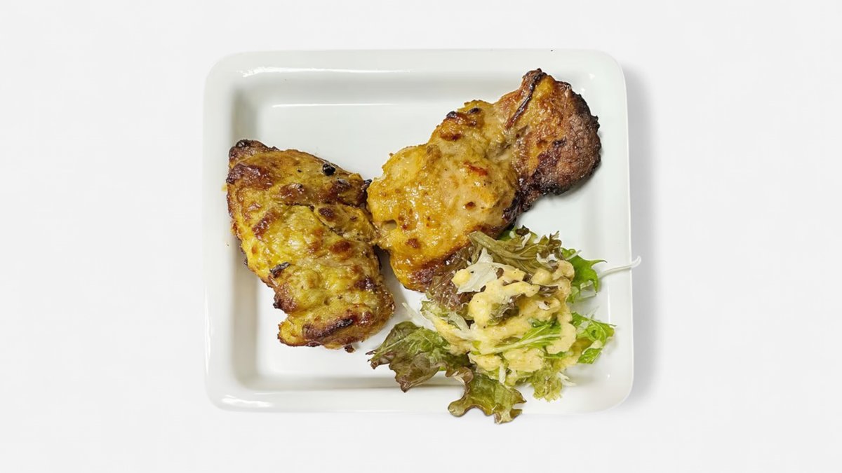 バターとクリームに漬け込んだ柔らかチキンを炭火でじっくり焼き上げた人気メニュー。2ピース入り。