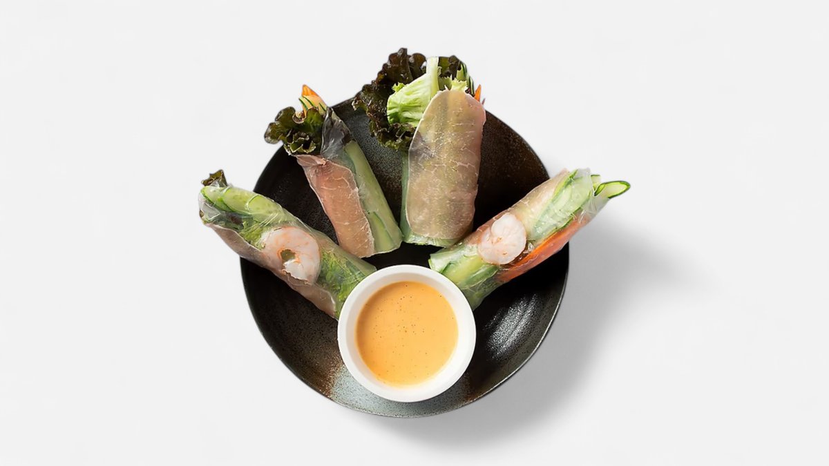 野菜と具材をライスペーパーで包んだヘルシーな一品。特製ソースでさっぱりとお楽しみいただけます。