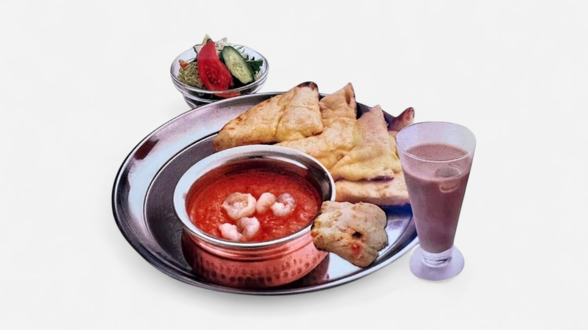 お好きなカレーに、お好きなナンまたはライス、香ばしいシークケバブとドリンクが付いた満足感たっぷりのセットです。