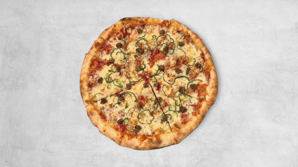 アメリカでお馴染みの自家製イタリアンソーセージとピーマンがトッピングされたピザ。 ※12インチ(30cm)になります。
