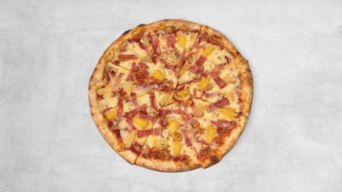 ジューシーなパイナップルとベーコンがトッピングされたハワイアンスライス。