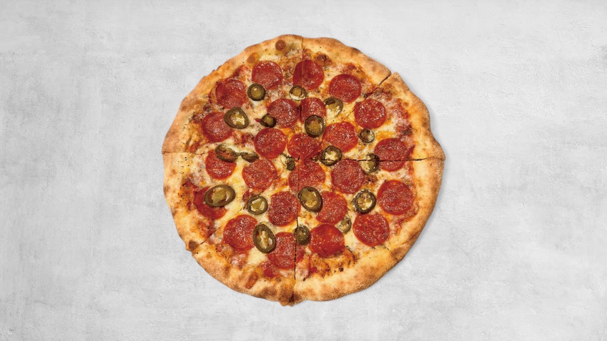 大人気のペパロニにスパイシーなハラペーニョをトッピングしたピザ。 ※12インチ(30cm)になります。