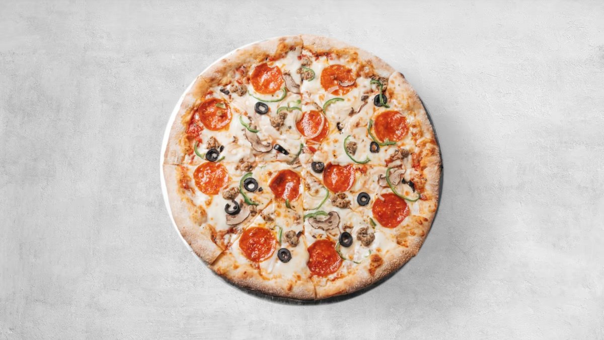 最高という意味を持つシュプリームの名にふさわしい、ペパロニ、ブラックオリーブ、イタリアンソーセージ、ピーマン、オニオン、マッシュルームをトッピングしたピザ。 ※12インチ(30cm)になります。