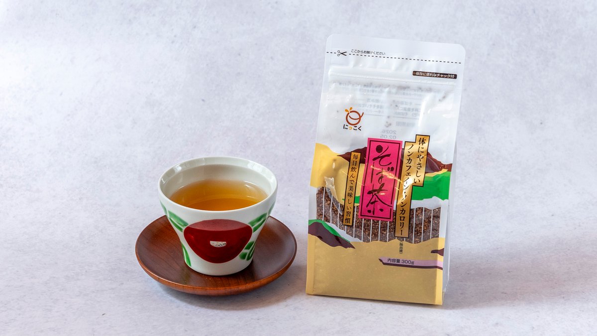 店内でも提供しているノンカフェイン・ノンカロリーのそば茶です。