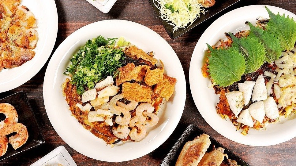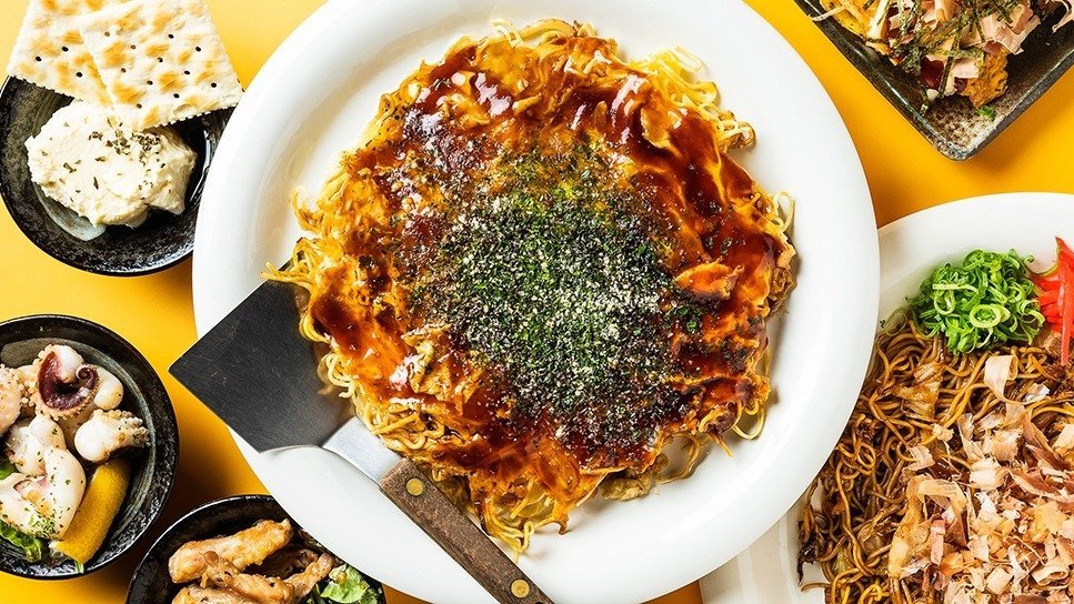 何層にも重ねたキャベツの甘みと、こだわりのソバが絶妙なバランスを奏でるお好み焼き。本場の一皿をご堪能ください🥢